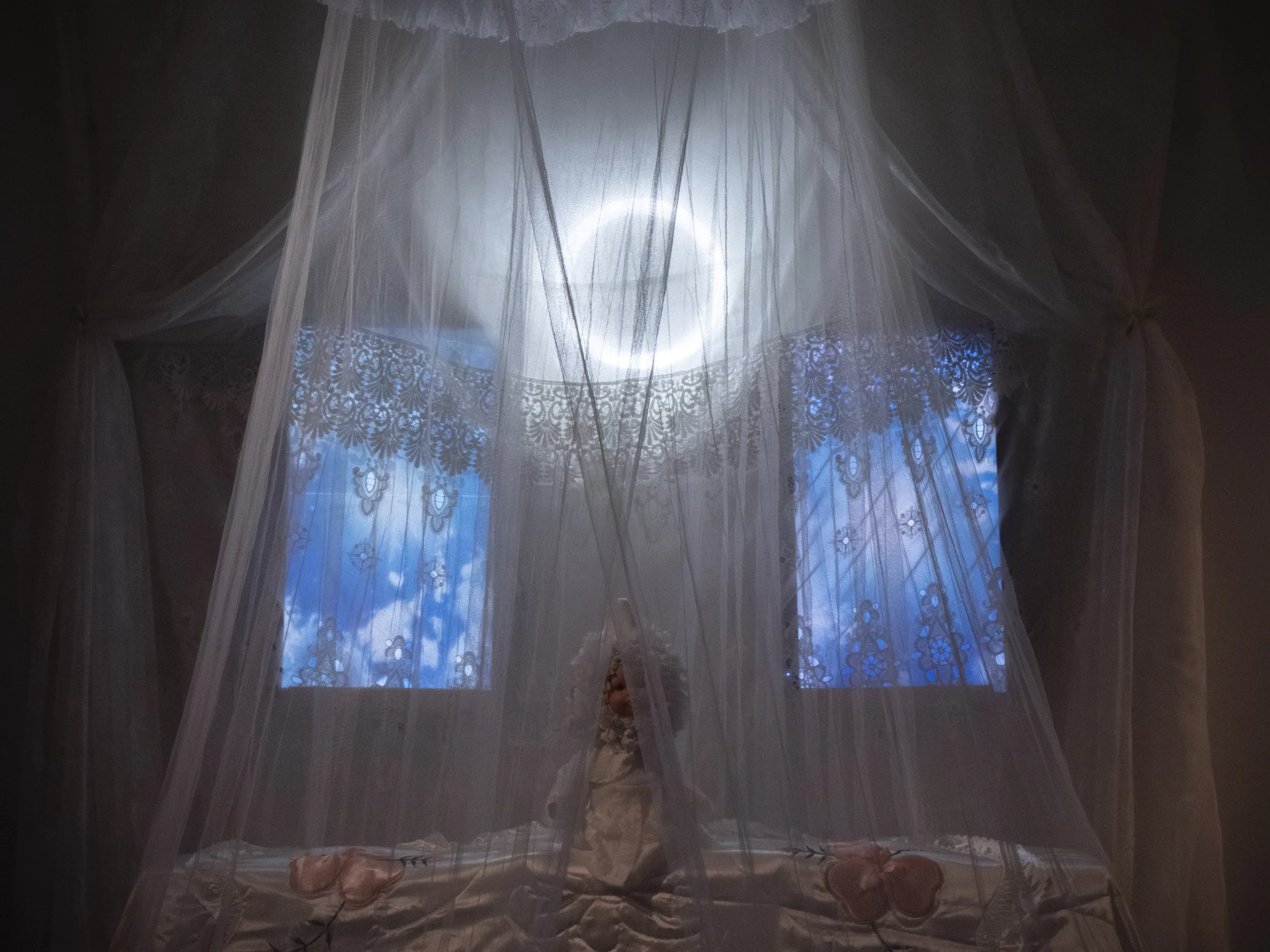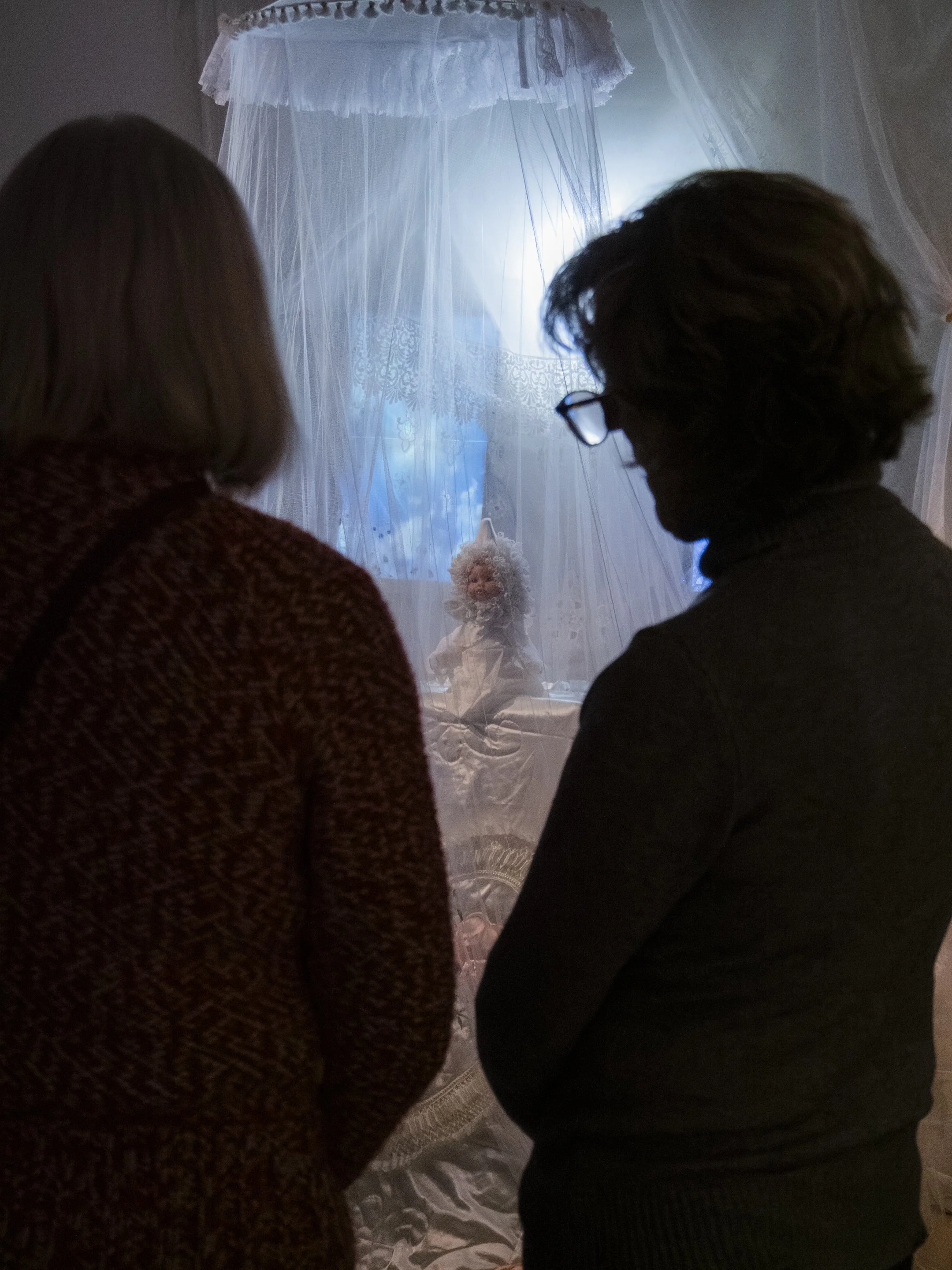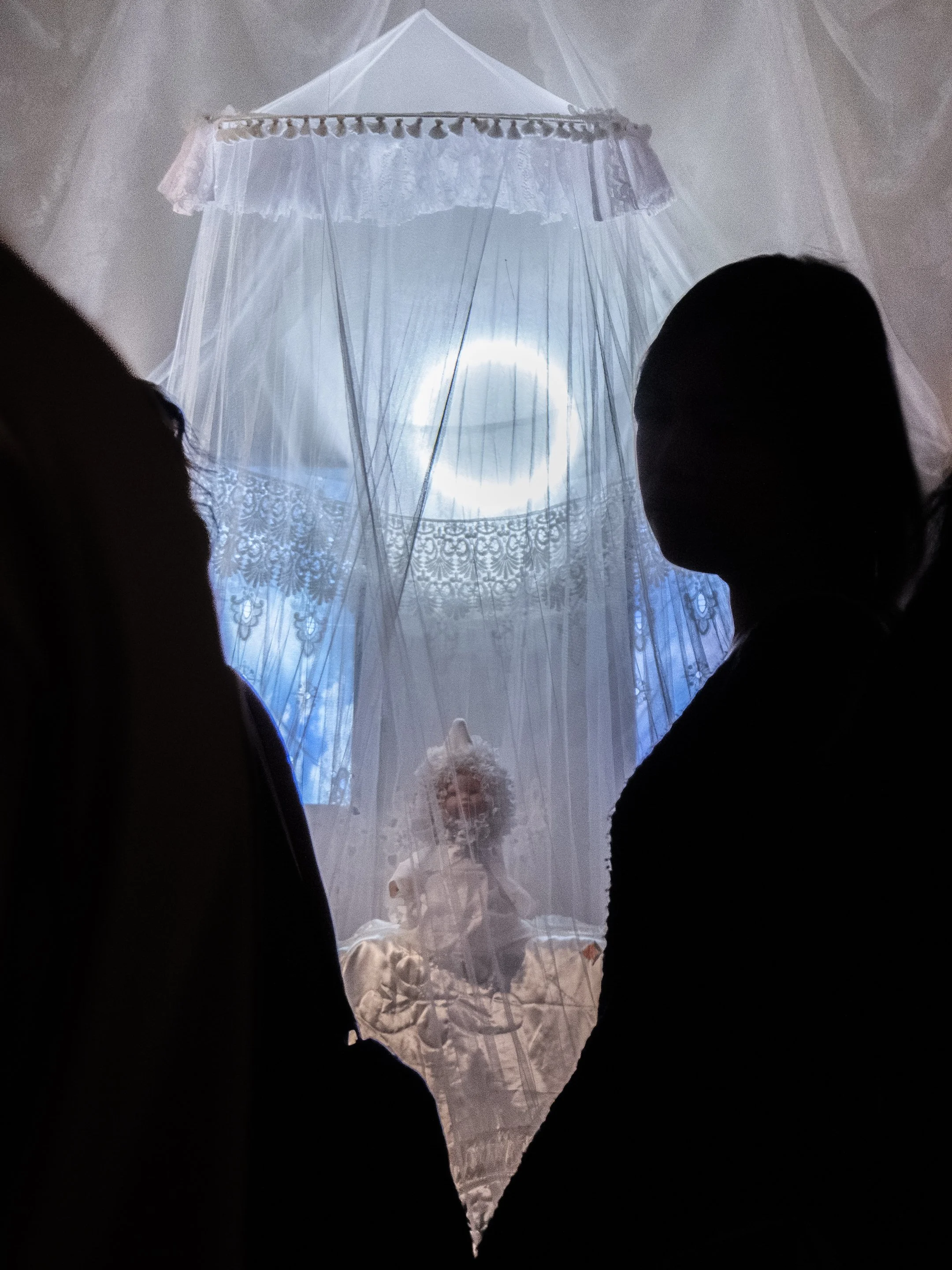 Doll heads, doll body, cotton, lace, chiffon, silk satin, polyester, video